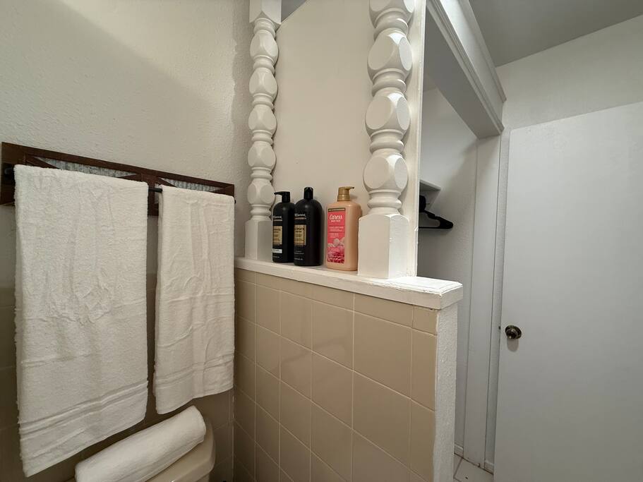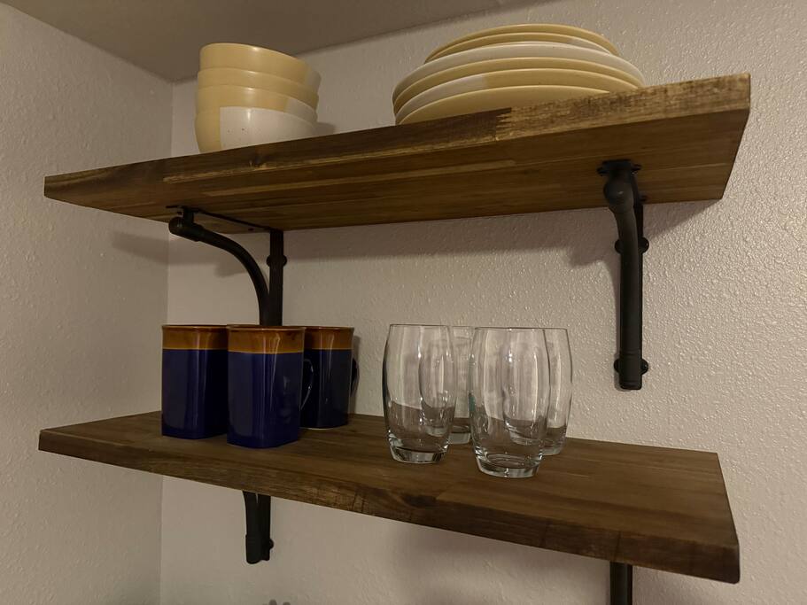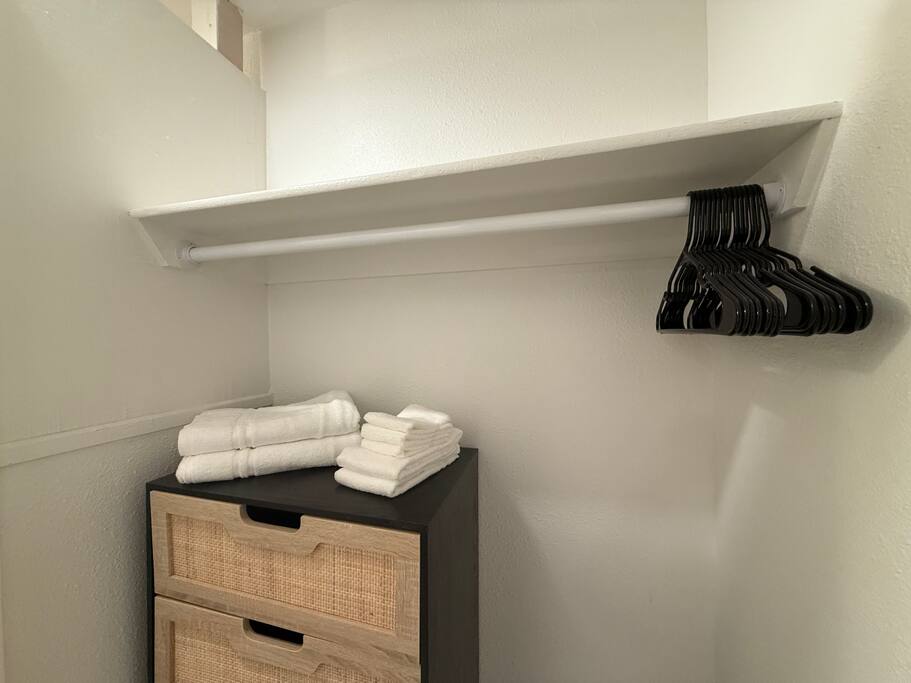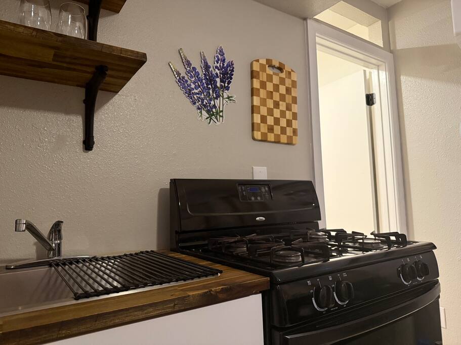This private studio guesthouse includes: • Comfortable sleeping area with fresh linens • Fully equipped kitchen (stovetop, fridge, microwave, cookware, and dinnerware) • Full bathroom with towels and toiletries provided • Air conditioning and heating for year-round comfort • Closet space and storage for your belongings
