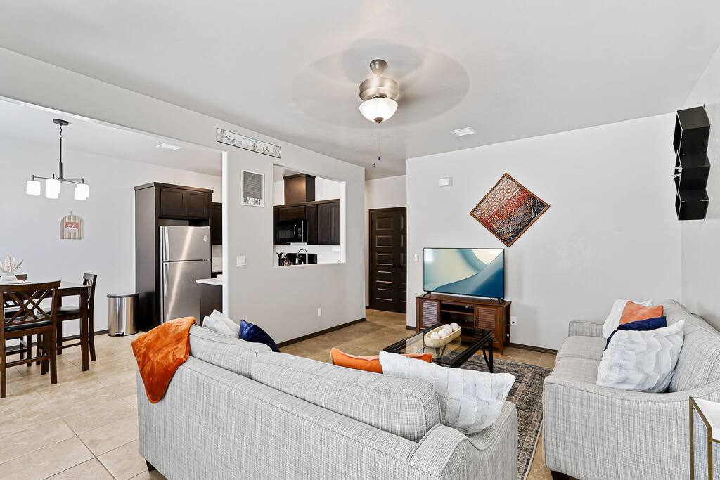 This single-story home features 3 bedrooms and 2 full bathrooms, each with a comfortable queen bed and fresh linens. Stay cool with central A/C, relax in the open living space, and enjoy home-cooked meals from the fully equipped kitchen stocked with cooking basics and appliances. Located on a quiet residential street with driveway parking, Warm Landing offers a peaceful retreat just 6 miles from downtown El Paso and from Fort Bliss. Whether you're traveling for work, adventure, or family time, you’ll have everything you need for a seamless stay.