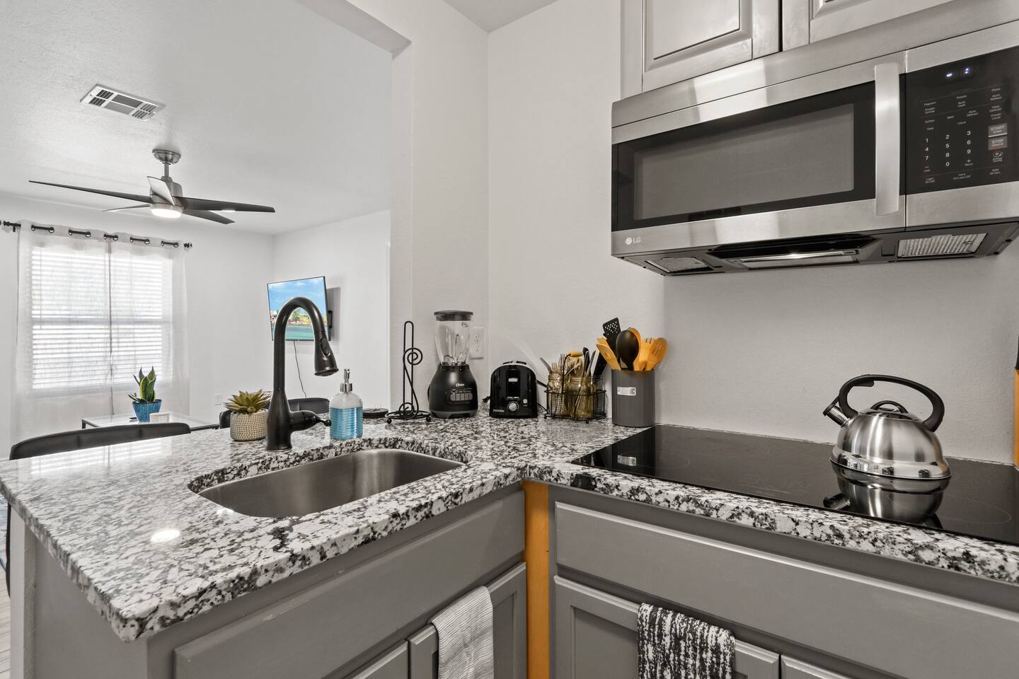 Recently renovated apartment located on the Westside of El Paso, close to many shops and only 10 minutes from the highway. This apartment is gated with your own patio for your beloved pets and privacy. We love our pets but please be considerate of our home! We charge $70 per fur babies during your stay.